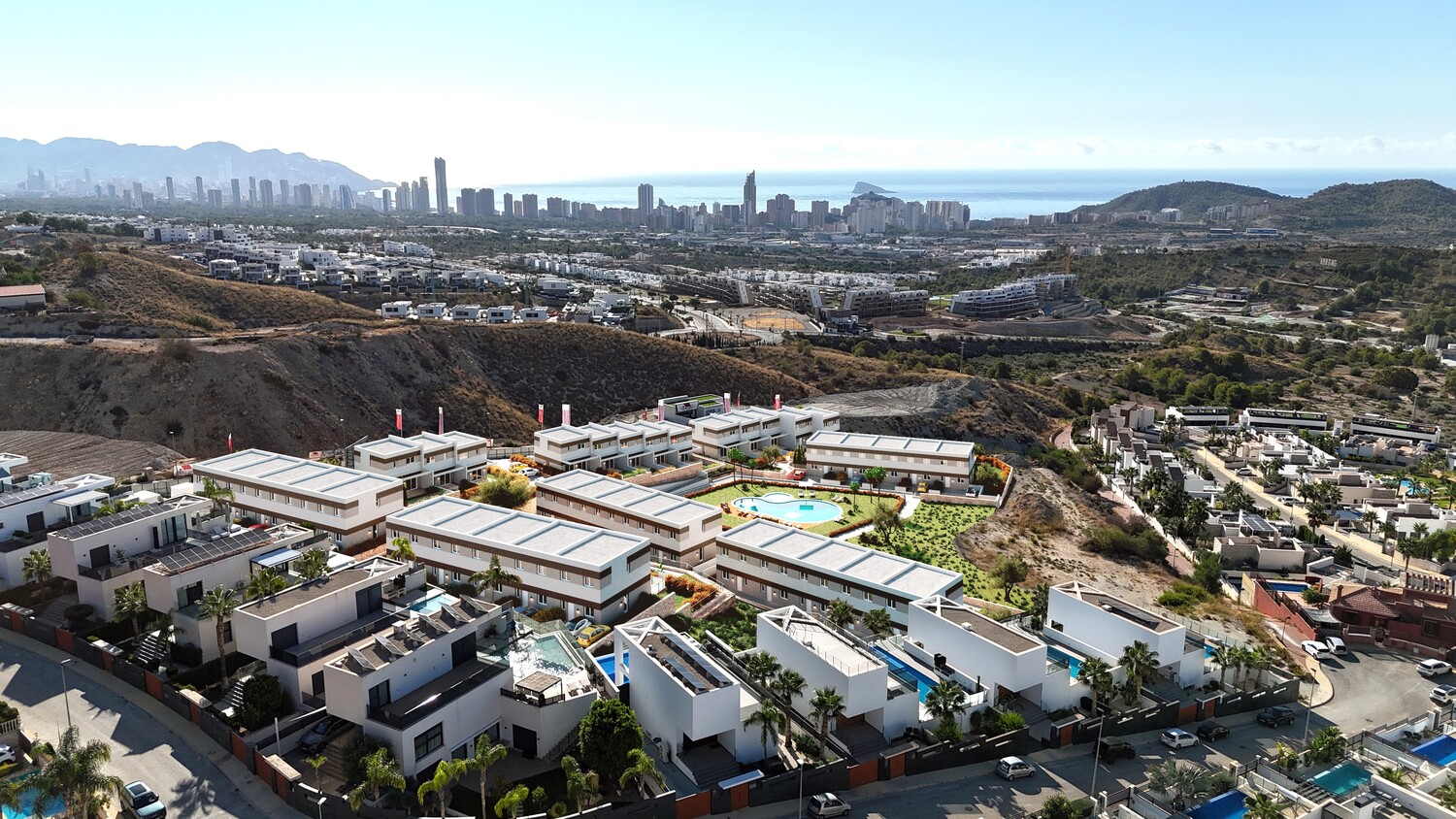 Energiezuinige (label A) duplex Villa’s direct aan de natuur in Finestrat. Een aantal van deze woningen hebben zeezicht. Finestrat is een mooie rustige kustplaats met een fijn zandstrand en omgeven door bergen. Het ligt 3 km ten zuiden van het bruisende Benidorm. Het oude centrum van Finestrat is prachtig met smalle straten en schitterende kleurrijke huizen, heerlijk om doorheen te slenteren. Ondanks de rust is er veel te beleven en zijn er allerlei sportieve- en recreatieve activiteiten voor het hele gezin. De golfbaan Puig Campana ligt op 1,5 km afstand. Het Themapark Terra Mitica en het waterpark Aqualandia liggen vlakbij.